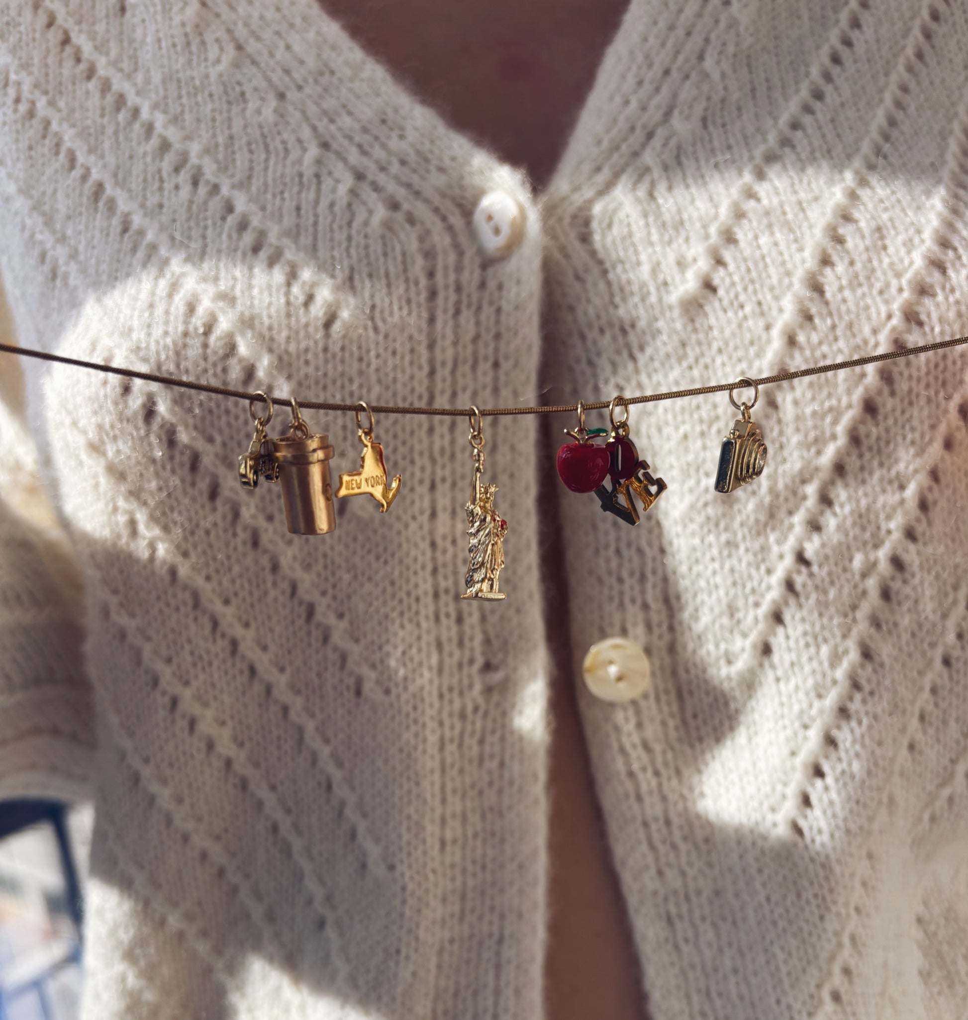 Si tratta di charm in ottone, acciaio e smalto montati su catena in acciaio snake tubolare con spessore di 2 mm.