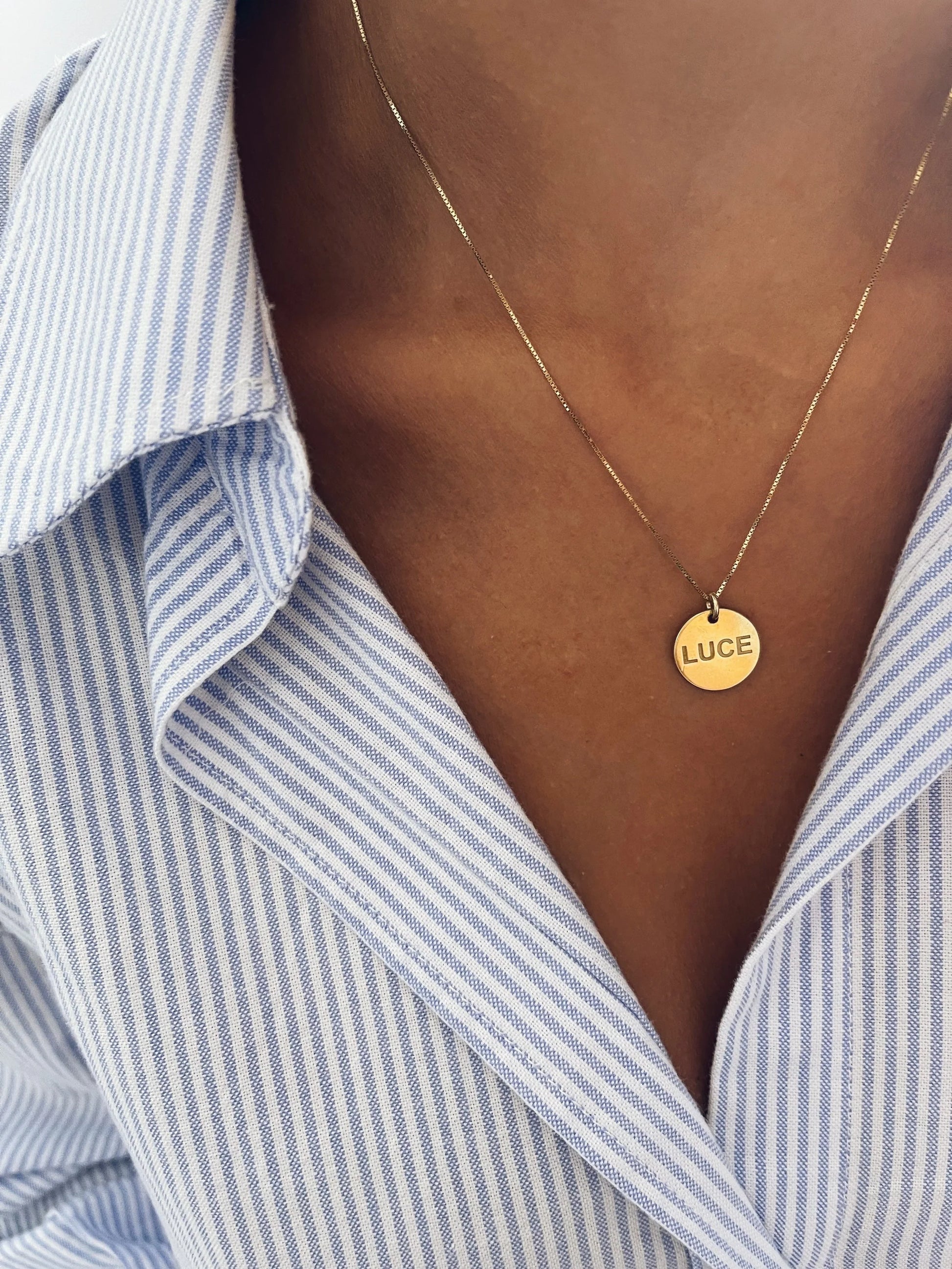 Scegli tu la lunghezza della collana, la galvanica e l’incisione.