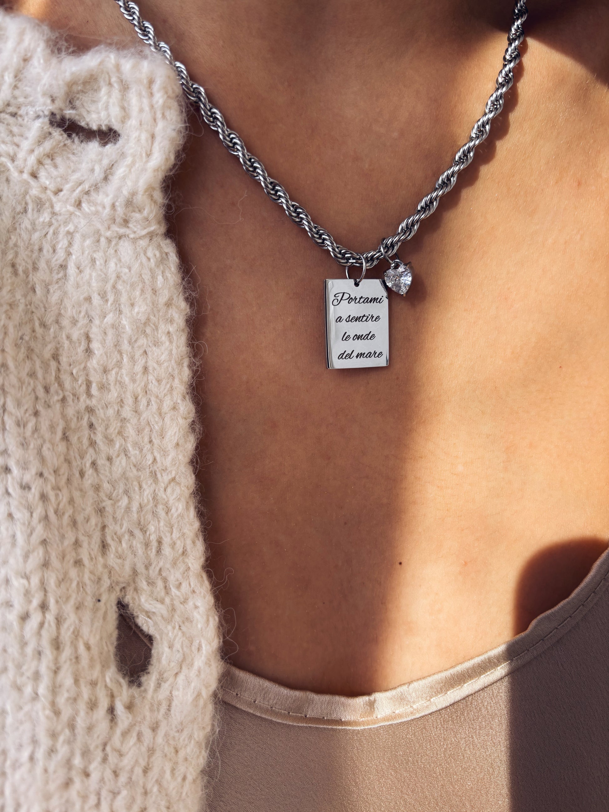 Puoi inserirla in una catena e abbinarla ai tanti ciondoli in acciaio che trovi nello shop.