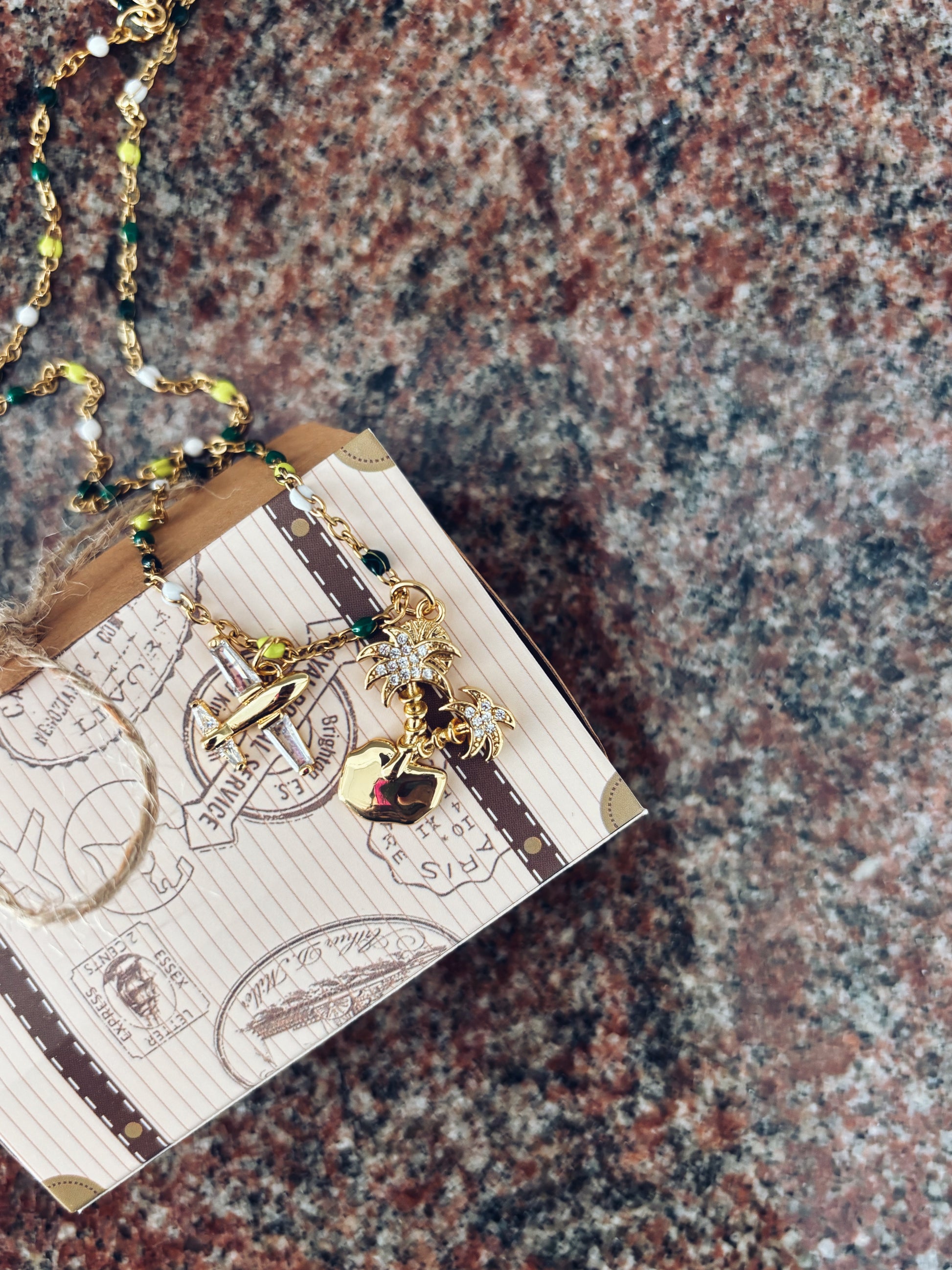 Le collane della collezione “In Viaggio” vengono spedite dentro scatoline in carta kraft a forma di valigia e accompagnate da card a tema viaggio (due frasi disponibili che verranno scelte RANDOM).