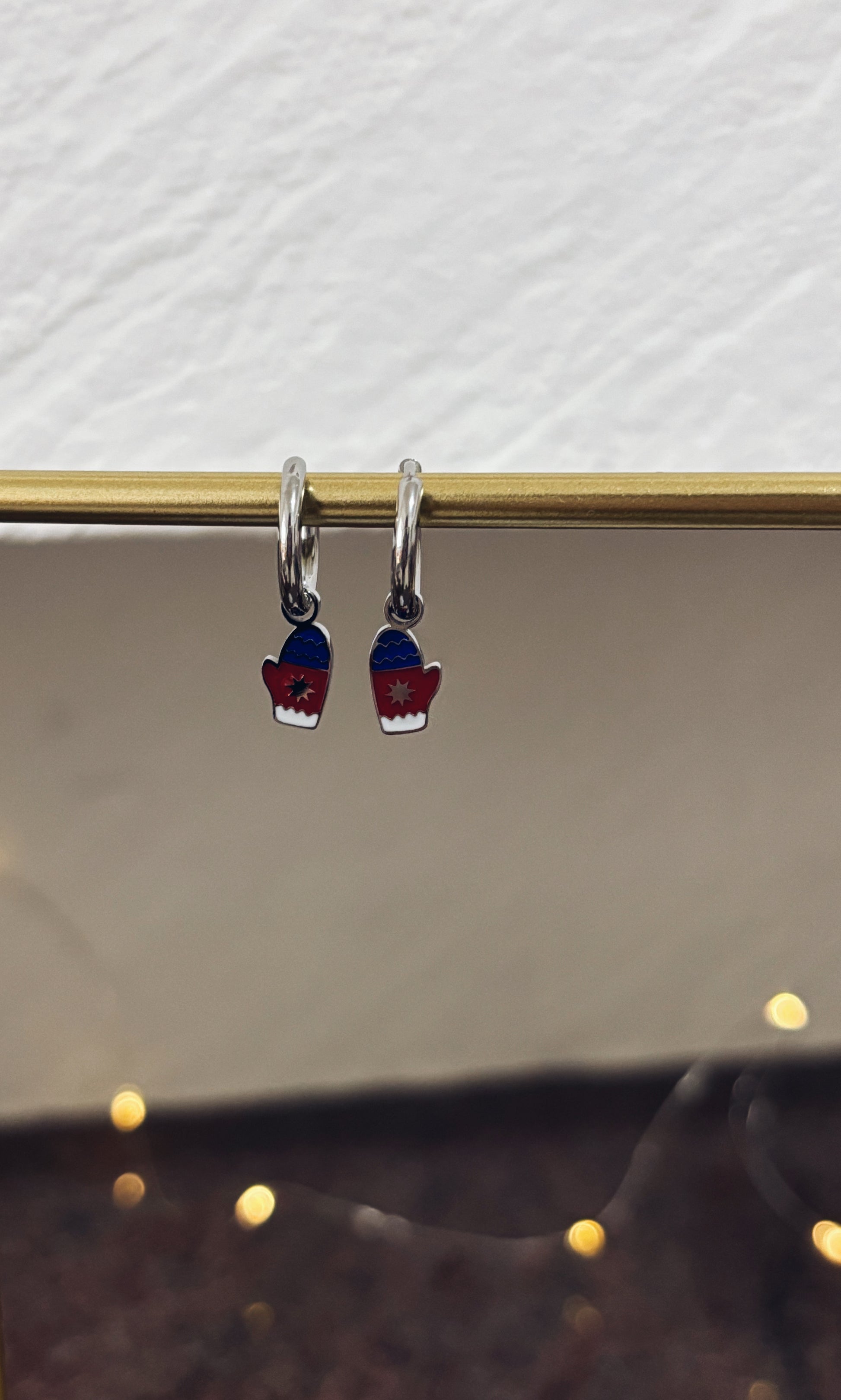 Orecchini a cerchio in acciaio con ciondolo a tema natalizio.