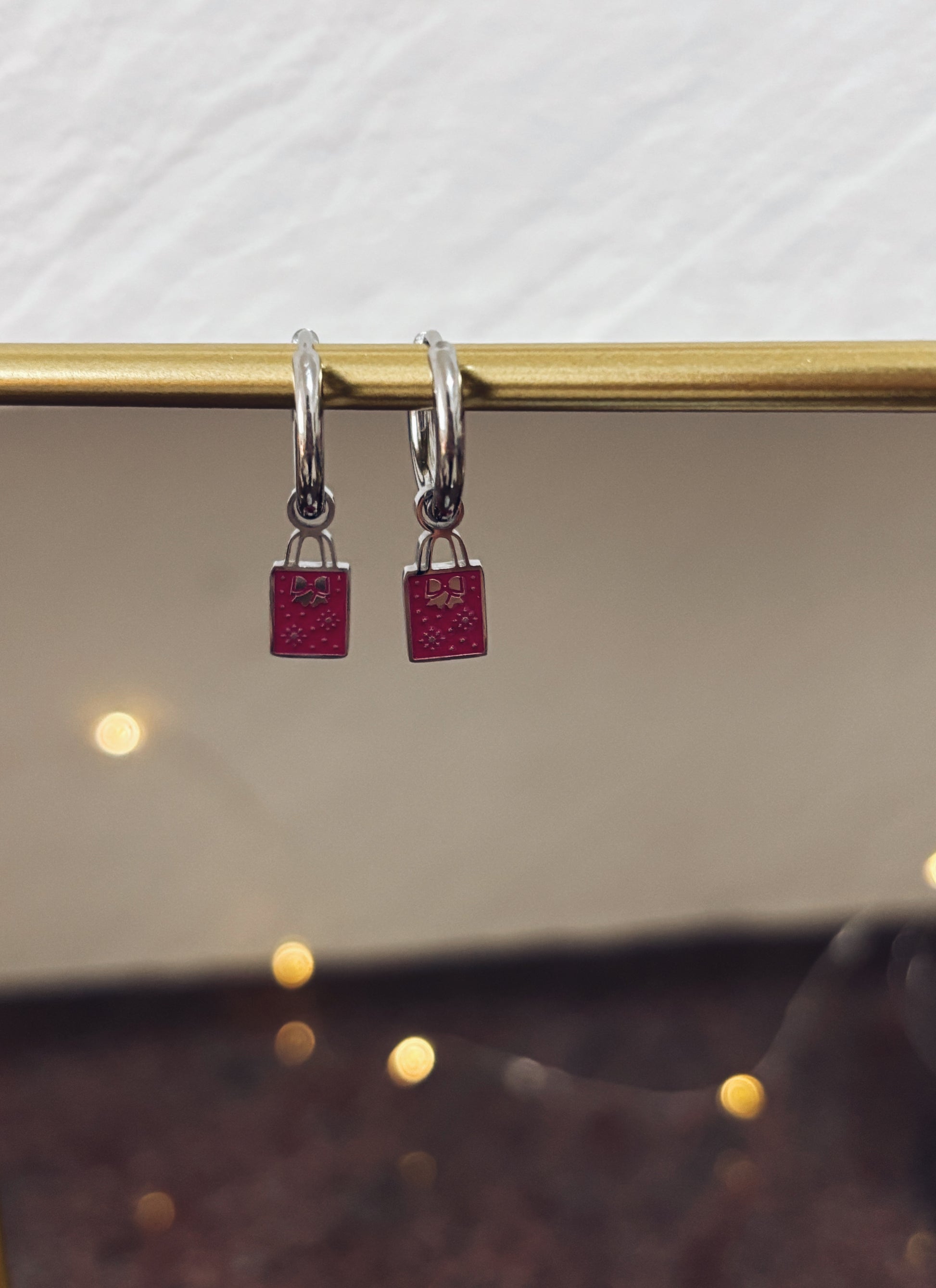 Orecchini a cerchio in acciaio con ciondolo a tema natalizio.