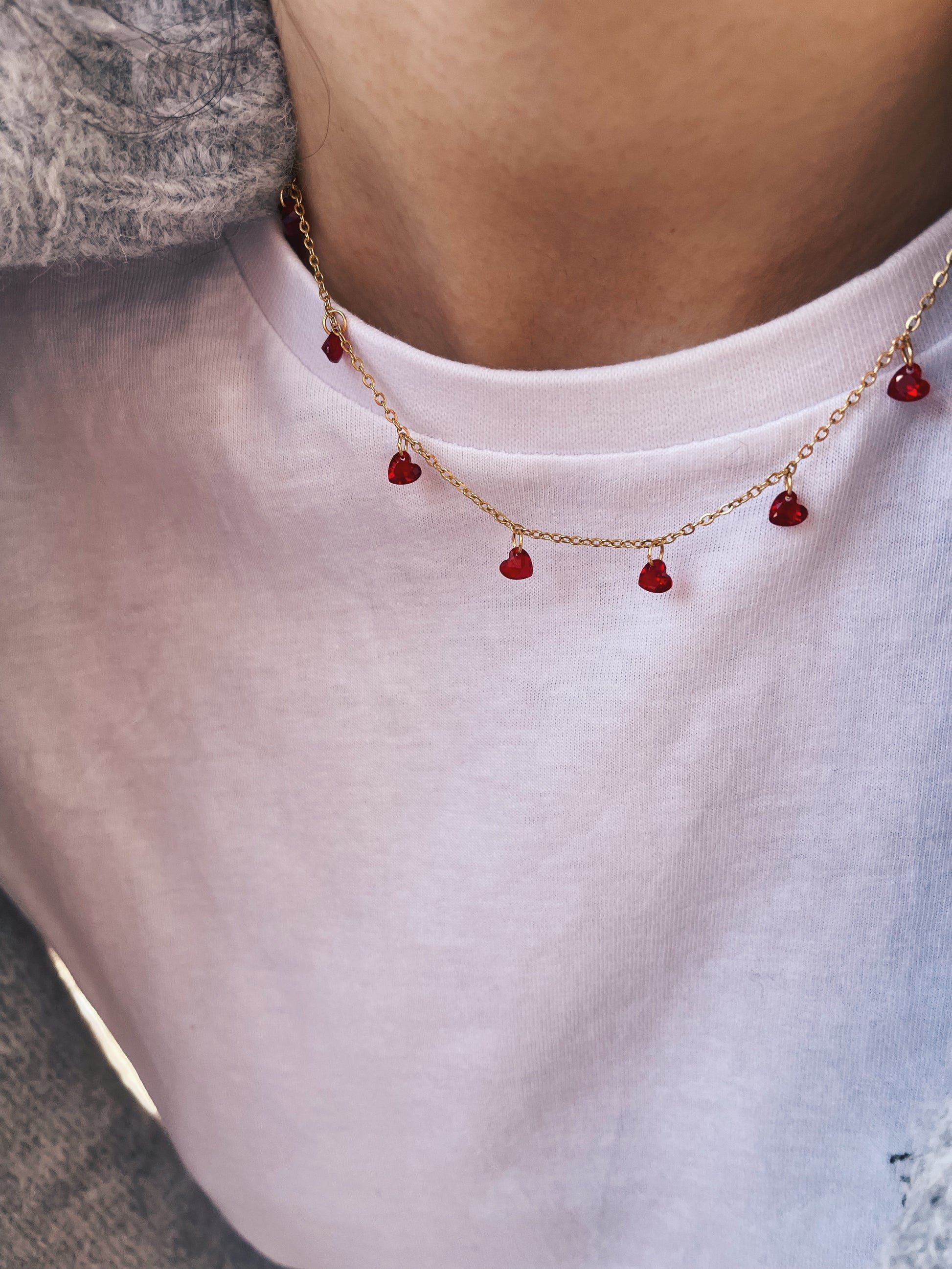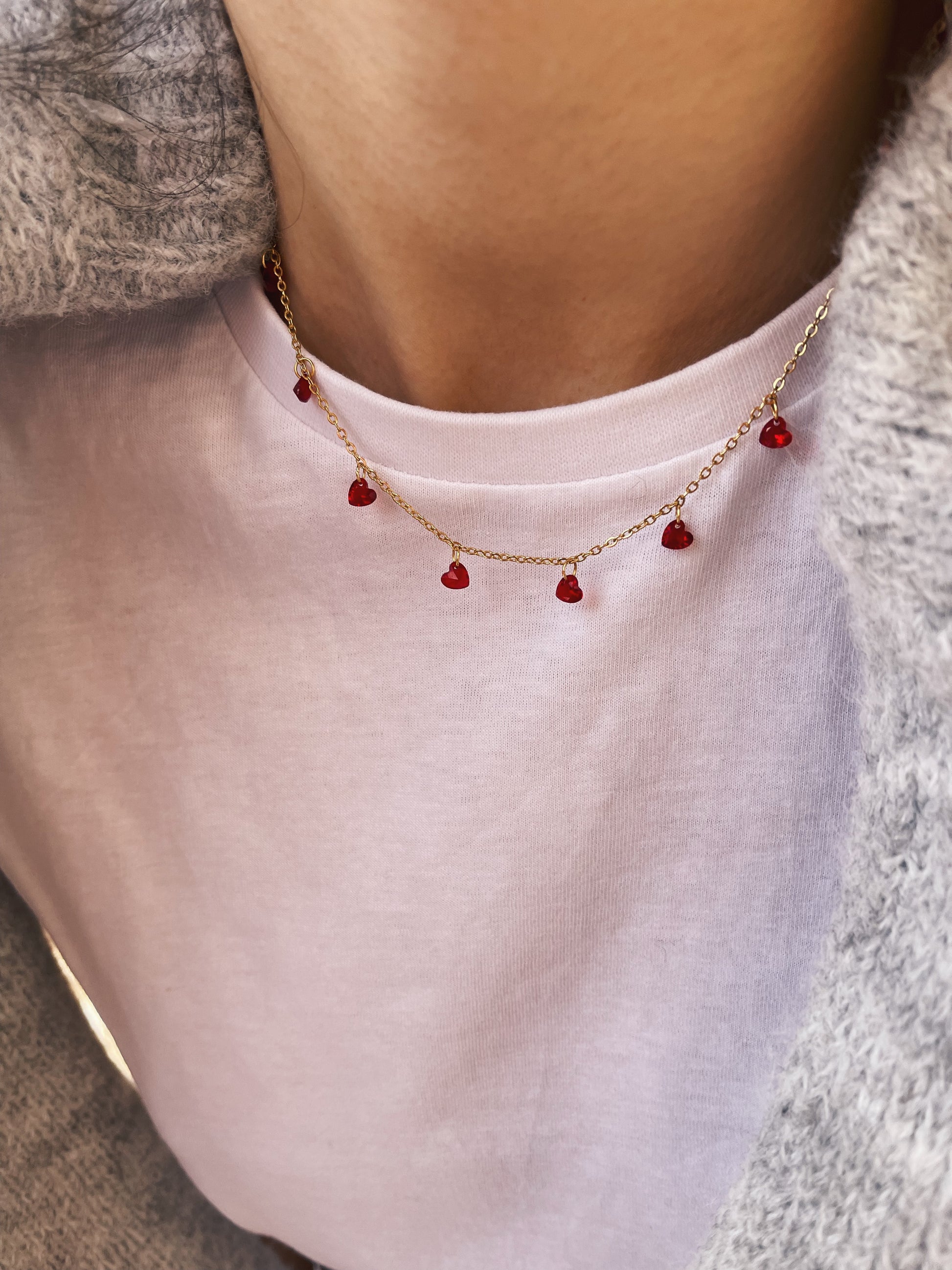 Girocollo in acciaio con piccoli cuori pendenti di zircone.