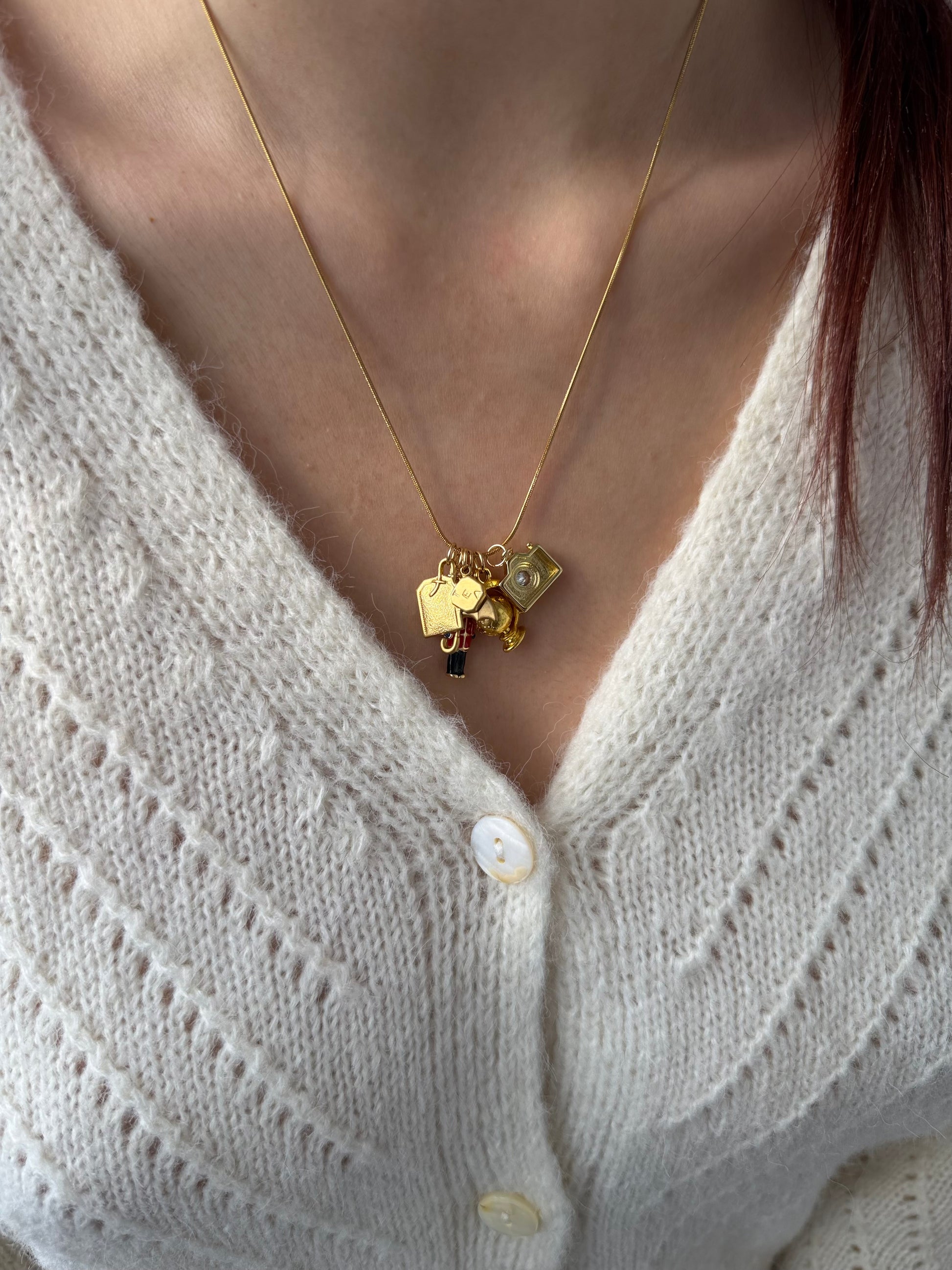 Si tratta di charm in ottone, acciaio e smalto montati su catena in acciaio snake tubolare con spessore di 2 mm.