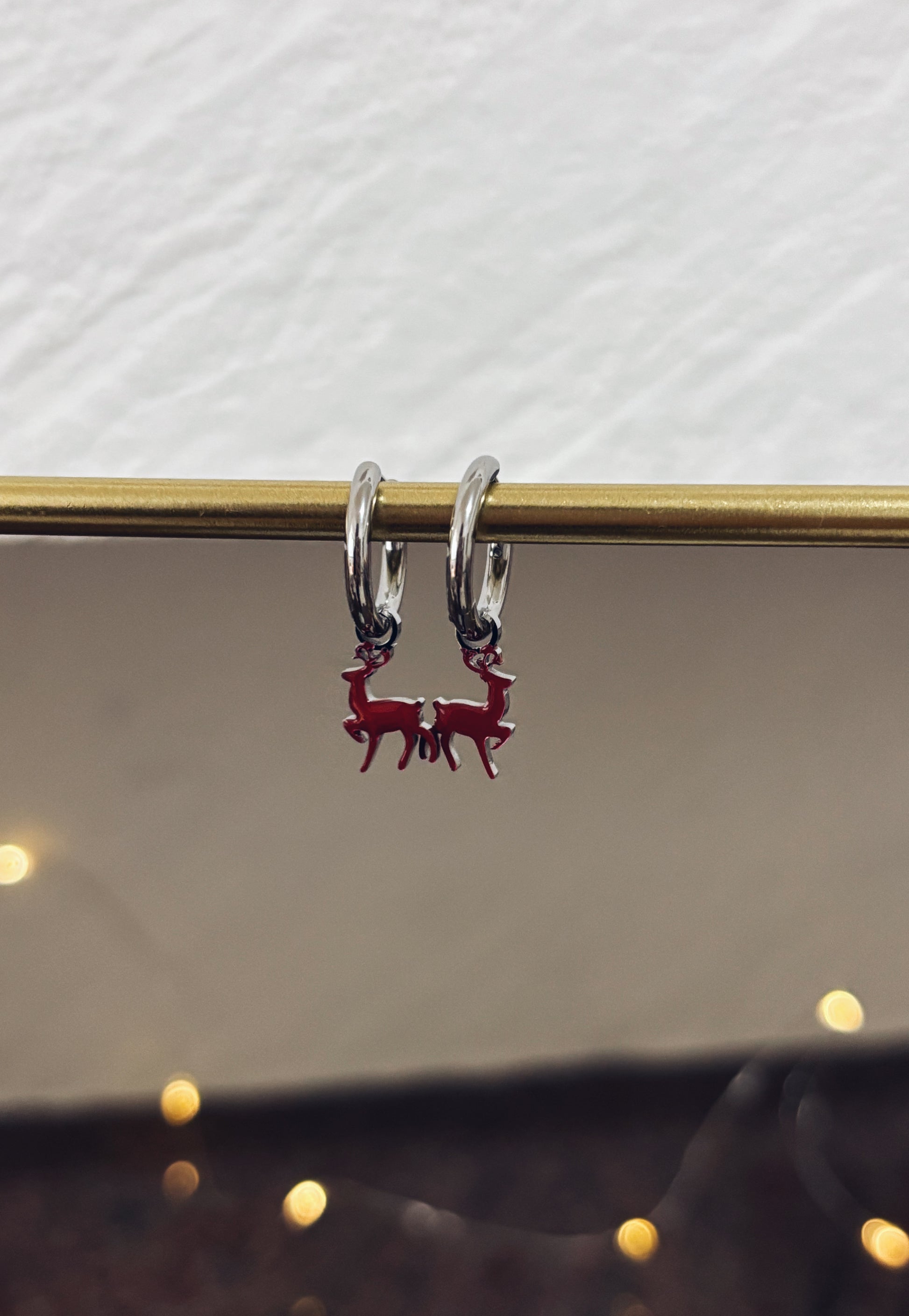 Orecchini a cerchio in acciaio con ciondolo a tema natalizio.